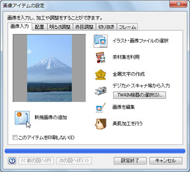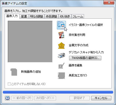 「画像入力」タブをクリックし、[イラスト・画像ファイルの選択]ボタンをクリックします。![]() |