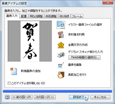 (3)〜(7)の操作と同様にして、目的の画像を選択し、[設定終了]ボタンをクリックします。![]() |