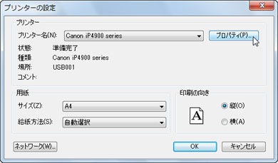 [プリンター名(N)]でプリンタを選択し、[プロパティ(P)]ボタンをクリックします。![]() |