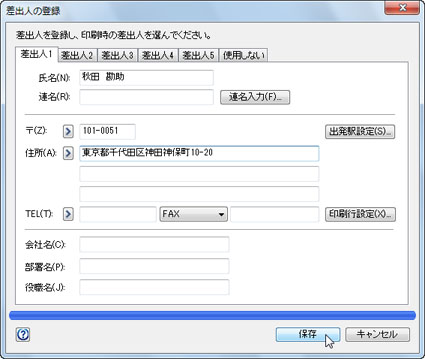 | 差出人情報を登録するには、次のように操作します。 | |||||||||||||||||||||
