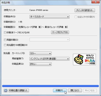 [印刷条件(G)]の▼をクリックして、「すべてのカード」を選択し、[印刷(P)]ボタンをクリックします。![]() |