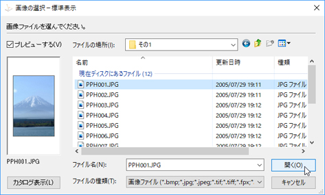 目的の画像を選択し、[開く(O)]ボタンをクリックします。![]() |