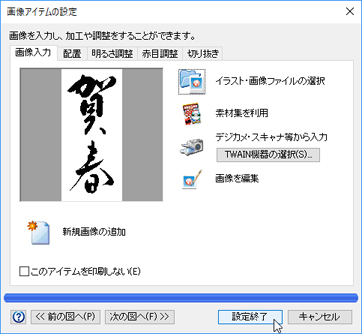 (3)〜(7)の操作と同様にして、目的の画像を選択し、[設定終了]ボタンをクリックします。![]() |