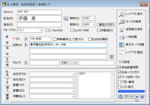 [氏名(N)]に氏名を入力します。 | ||||||||||||||||||||