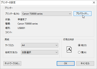 [プリンター名(N)]でプリンタを選択し、[プロパティ(P)]ボタンをクリックします。![]() |