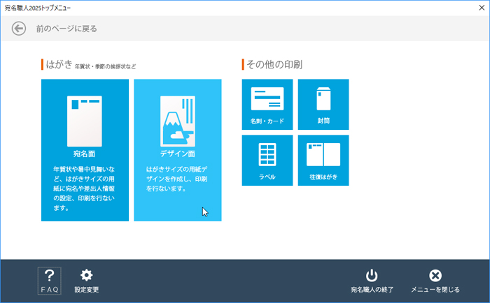 [宛名・デザイン]をクリックし、「デザイン面」をクリックします。![]() |