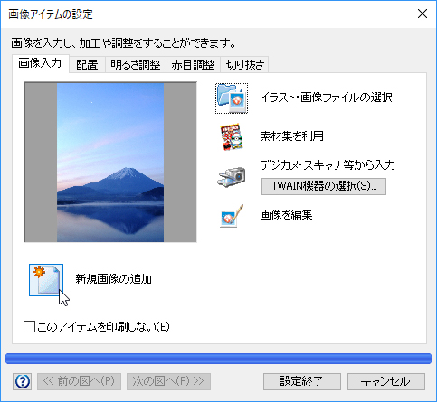 さらに画像を追加する場合は、[新規画像の追加]ボタンをクリックします。![]() |