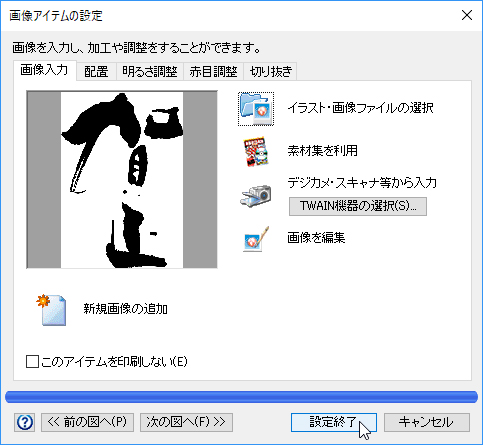 「画像入力」タブをクリックし、[イラスト・画像ファイルの選択]ボタンをクリックします。![]() |