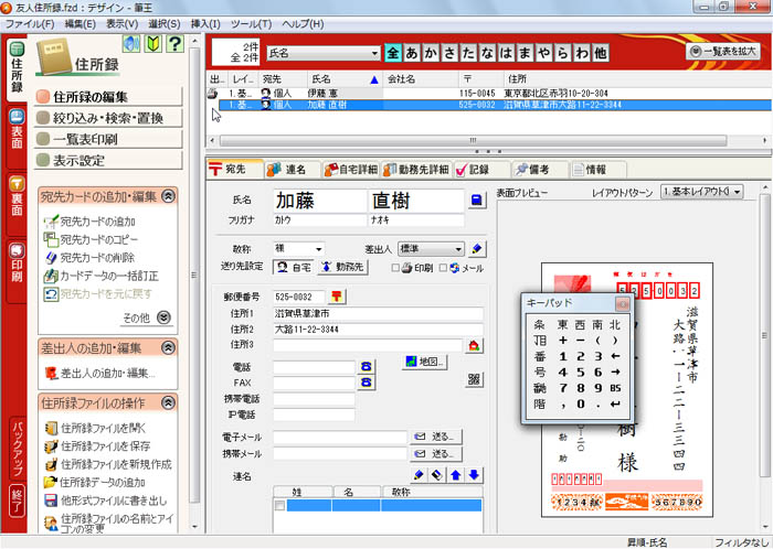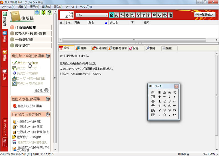 画面左端の「住所録」タブをクリックし、[宛先カードの追加・編集]の「宛先カードの追加」をクリックします。![]() |