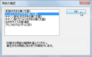 用紙の種類を選択し、[OK]ボタンをクリックします。 | ||||||||||||||||||
