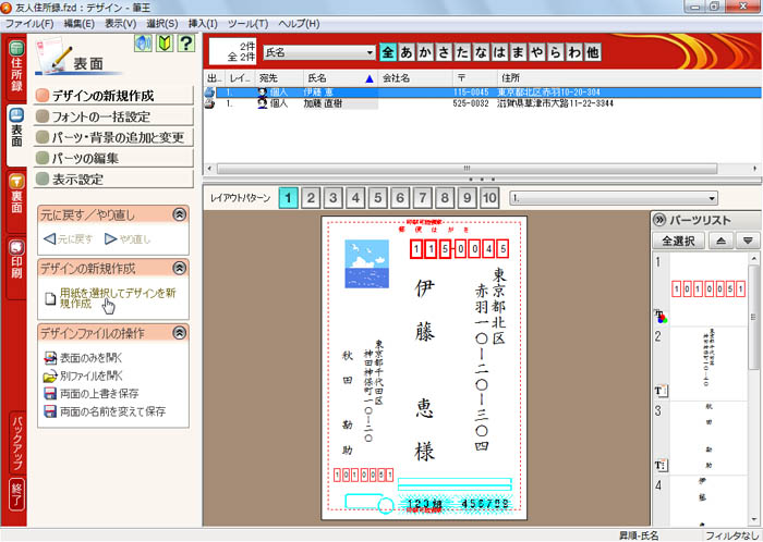 | 宛名面を作成するには、次のように操作します。 | |||||||||||||||||||
