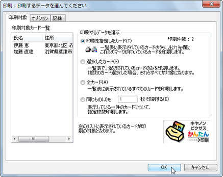 印刷するデータを選択し、[OK]ボタンをクリックします。![]() |
