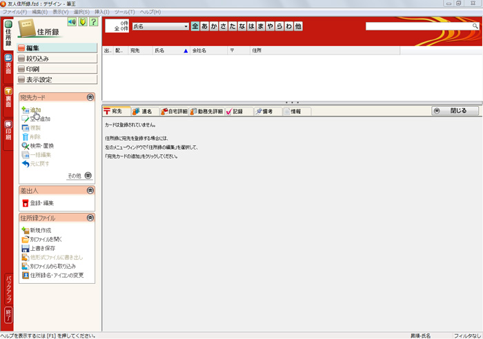 画面左端の「住所録」タブをクリックし、[宛先カード]の「追加」をクリックします。![]() |