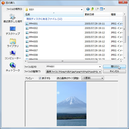 目的の画像を選択し、[開く(O)]ボタンをクリックします。![]() |