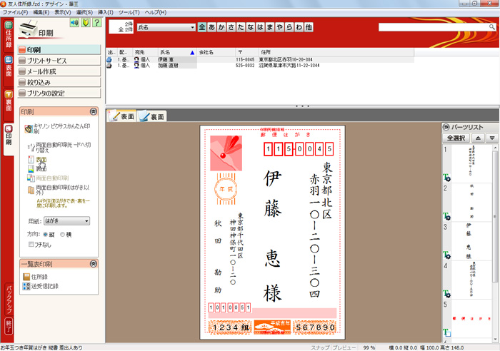 | 宛名面を作成するには、次のように操作します。 | |||||||||||||||||||