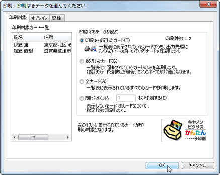 印刷するデータを選択し、[OK]ボタンをクリックします。![]() |