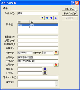 番地を入力し、[閉じる(C)]ボタンをクリックします。![]() |