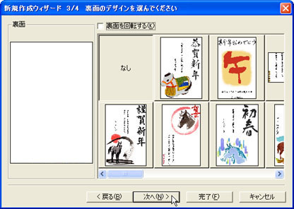 「新規作成」ウィザードが起動するので、[種類(S)]の一覧から「はがき(官製)」をクリックし、[次へ(N)>]ボタンをクリックします。 | ||||||||||||||||||