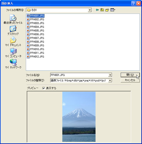 目的の画像を選択し、[開く(O)]ボタンをクリックします。![]() |