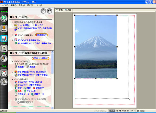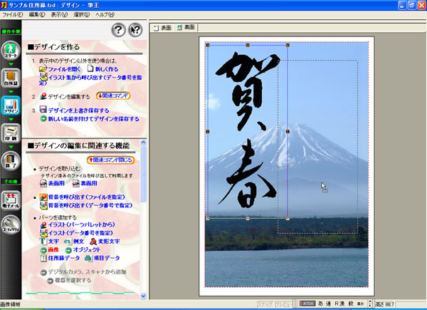 「表面」タブをクリックすると、宛名面のデザインを確認できます。![]() |