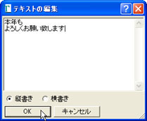 文字を入力し、[縦書き]または[横書き]をONにして、[OK]ボタンをクリックします。![]() |