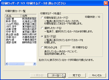 印刷するデータを選択し、[次へ(N)>]ボタンをクリックします。![]() |