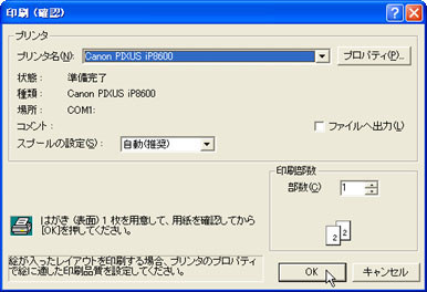 「印刷」ダイアログボックスの[OK]ボタンをクリックします。 | ||||||||||||||||||