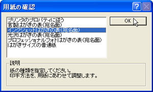 用紙の種類を選択し、[OK]ボタンをクリックします。![]() |