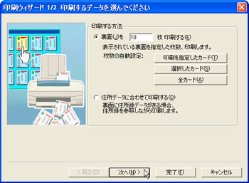 印刷部数を入力し、[次へ(N)>]ボタンをクリックします。![]() |