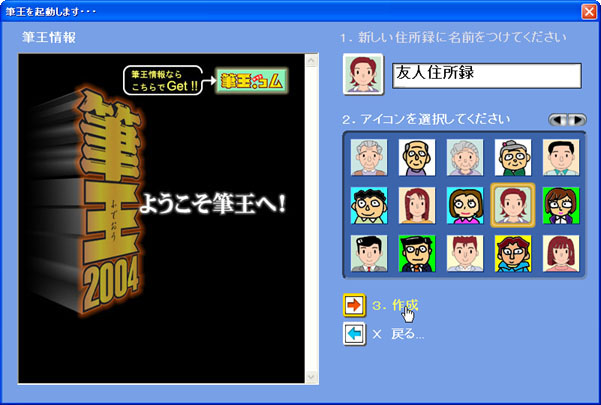住所録の名前を入力し、アイコンを選択して、[3.作成]をクリックします。![]() |