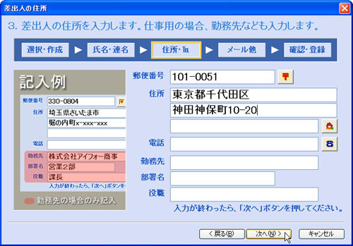番地を入力し、[次へ(N)>]ボタンをクリックします。![]() |