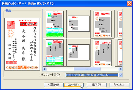 [テンプレート名(T)]の▼をクリックして、目的のレイアウトを選択し、[次へ(N)>]ボタンをクリックします。![]() |