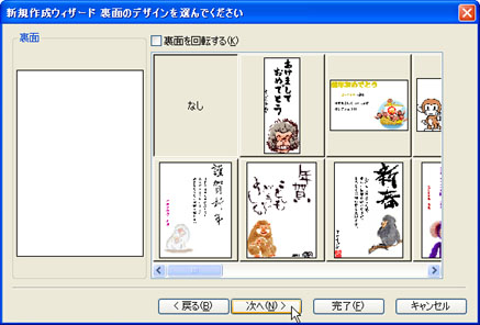 [なし]を選択し、[裏面を回転する(K)]をONにして、[次へ(N)>]ボタンをクリックします。![]() |