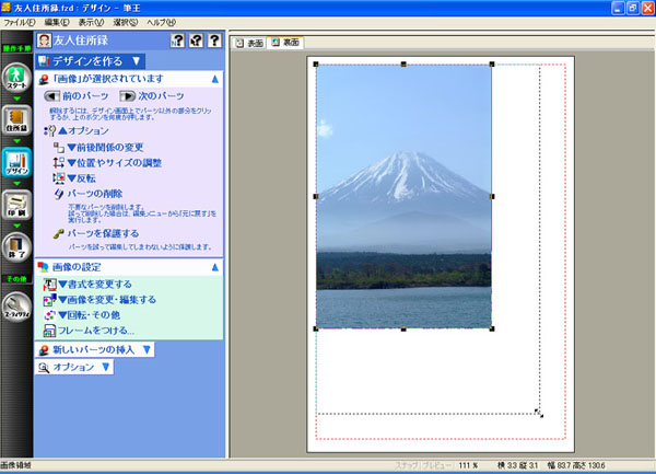 「表面」タブをクリックすると、宛名面のデザインを確認できます。![]() |