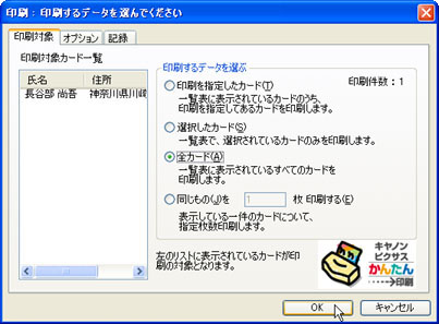 印刷するデータを選択し、[OK]ボタンをクリックします。![]() |