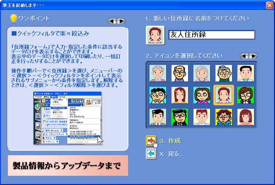 住所録の名前を入力し、アイコンを選択して、[3.作成]をクリックします。![]() |