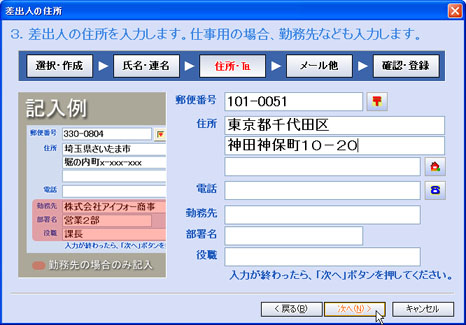 番地を入力し、[次へ(N)>]ボタンをクリックします。![]() |