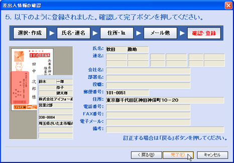 | 差出人情報を登録するには、次のように操作します。 | |||||||||||||||||||