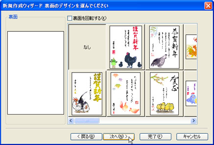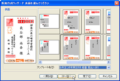 [テンプレート名(T)]の▼をクリックして、目的のレイアウトを選択し、[次へ(N)>]ボタンをクリックします。![]() |