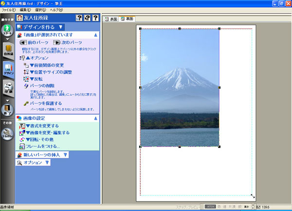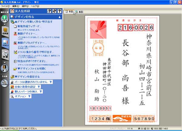 「表面」タブをクリックすると、宛名面のデザインを確認できます。![]() |