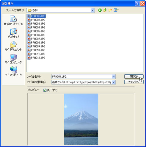 目的の画像を選択し、[開く(O)]ボタンをクリックします。![]() |