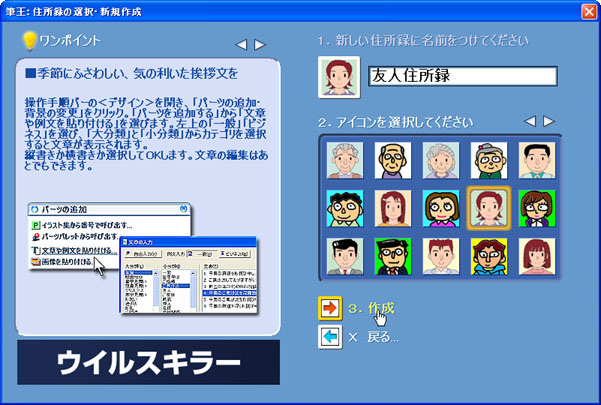 住所録の名前を入力し、アイコンを選択して、[作成]をクリックします。![]() |