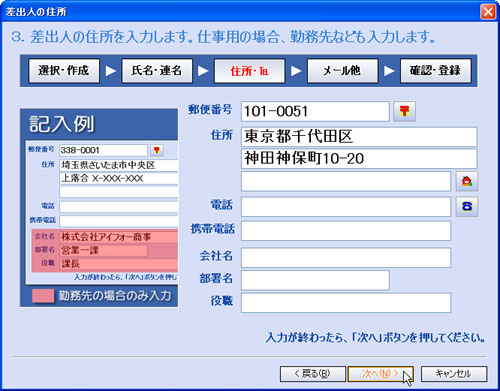 番地を入力し、[次へ(N)>]ボタンをクリックします。![]() |