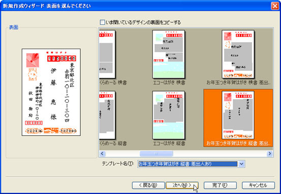 [テンプレート名(T)]の▼をクリックして、目的のレイアウトを選択し、[次へ(N)>]ボタンをクリックします。![]() |