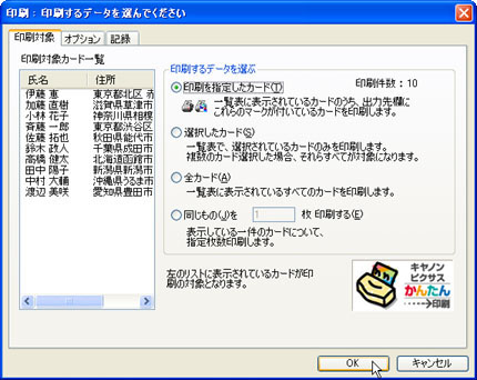 印刷するデータを選択し、[OK]ボタンをクリックします。![]() |