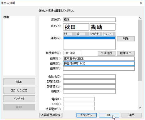 [氏名(N)]に姓と名を分けて入力します。 | ||||||||||||||||||
