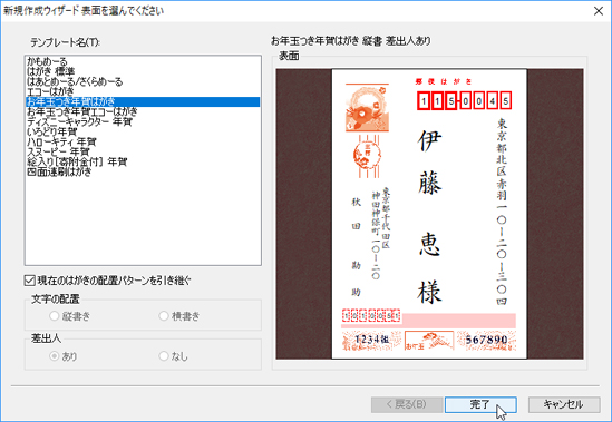 はがきの種類を選択し、[完了]ボタンをクリックします。![]() |