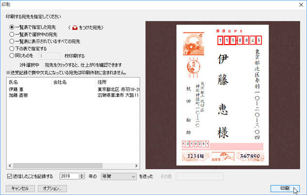 印刷する宛先を選択し、[印刷]ボタンをクリックします。![]() |