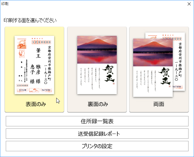 画面左端の「印刷」ボタンをクリックし、[印刷]の「表面のみ」をクリックします。![]() |