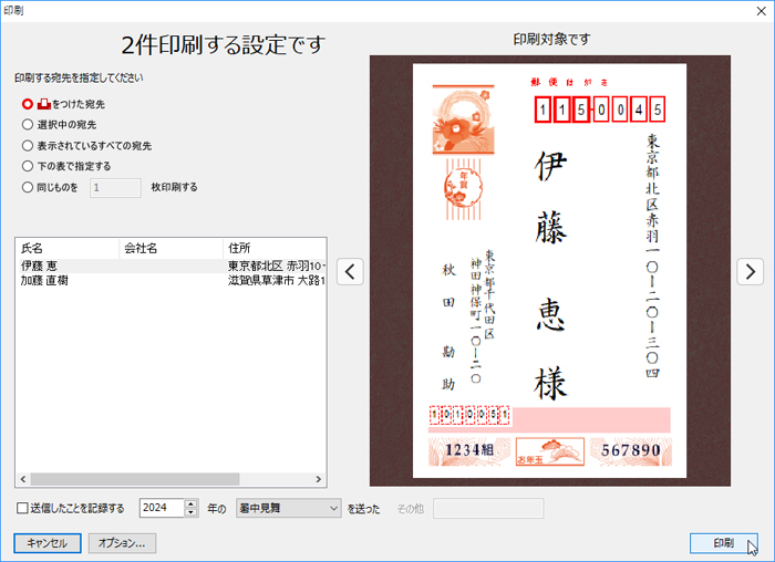 印刷する宛先を選択し、[印刷]ボタンをクリックします。![]() |
